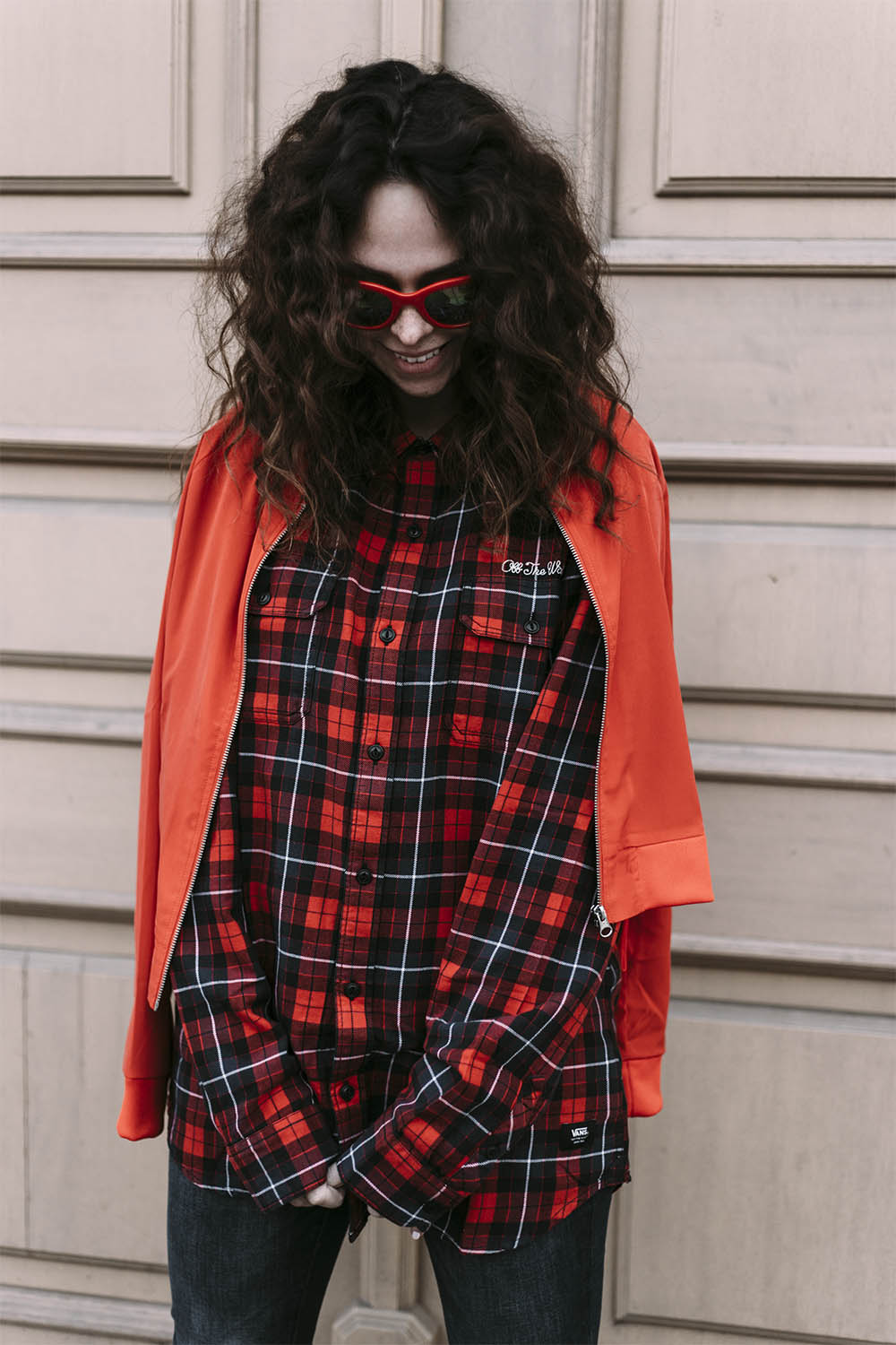 Pohodlná kockovaná košeľa Vans, ktorú môžeš kľudne nosiť aj ako šaty. A vieš prečo? Lebo táto košeľa je pánska, tak nakukni do priateľovej skrine, alebo ho poteš novou a môžete si ju striedať. Boty boli hračka. Členkové tenisky Vans z kolekcie Peanuts so Snoopym dopasuješ skoro ku všetkému a kto má Vansové tenisky, tak určite by takýto kúsok chcel aj u seba doma. Keďže je chladnejšie, nechýba ani červená Adidas Equipment bundička. Čerešničkou na torte je Vansova čapica.