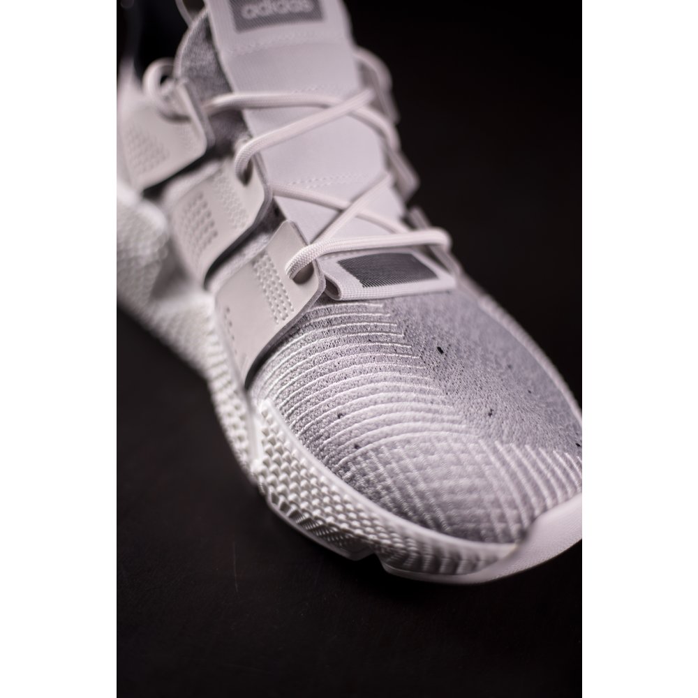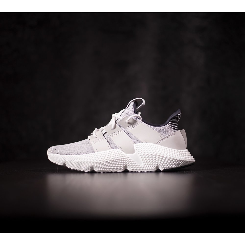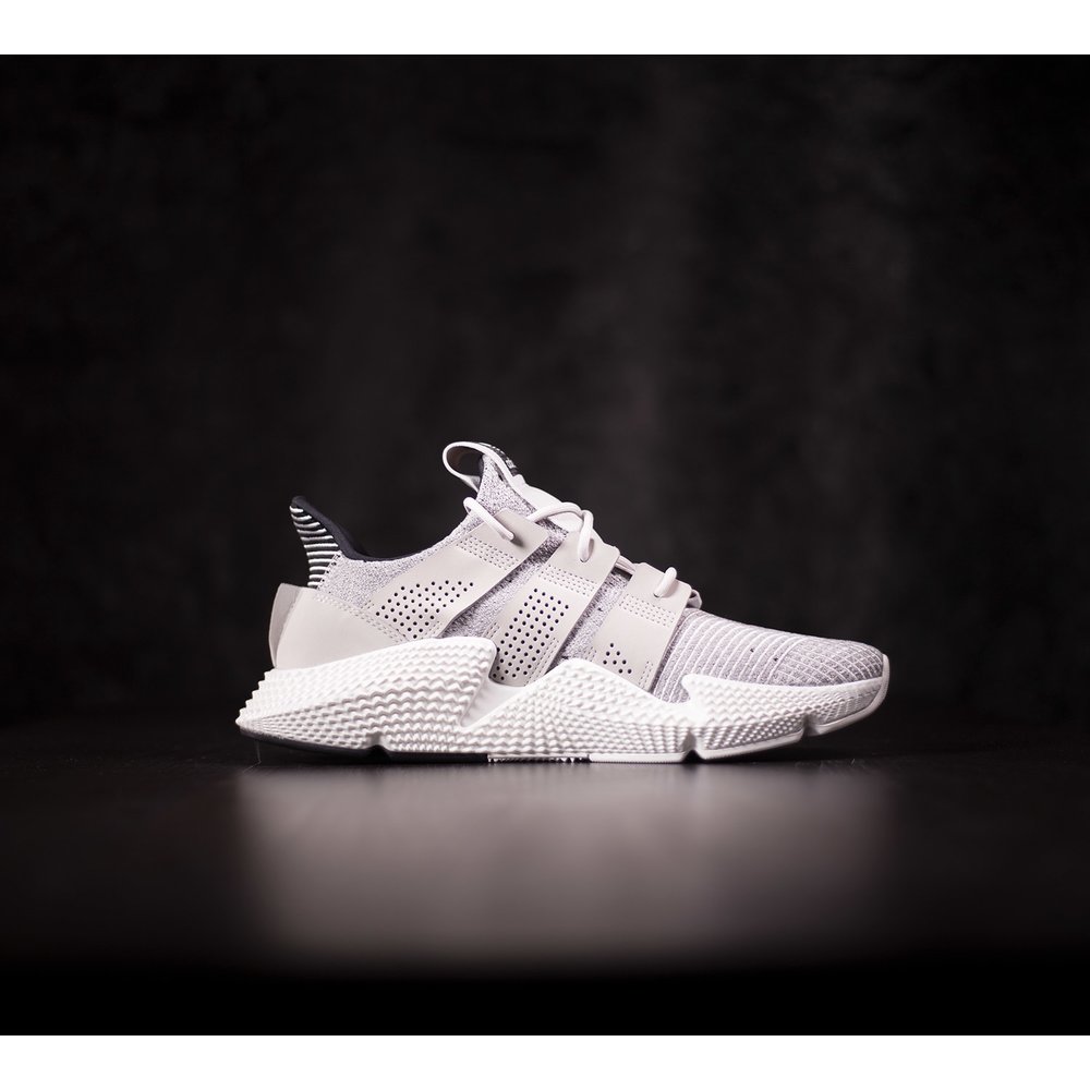 Tenisky adidas Prophere pre mužov sú v šedom prevedení. Zvršok je z elastického materiálu a aj golier okolo členka sa prispôsobí nohe a dotiahneš ich šnúrkami, kvôli čomu sa dobre obúvajú a aj skvele sedia. Tvarovaná medzipodrážka je z polyuretánu s tvarovanými stranami, podrážka je z gumy a je v bielej farbe. Model je inšpirovaný bežeckým štýlom. Vnútro tenisky je z neoprénu a z látky. Vzadu hore pri členku je čierny textiný detail s bielymi pásikmi. Päta a a výrazné držiaky na šnúrky sú v šedej farbe potiahnuté hladkou kožou. Cez sted ide šedá prešívaná nášivka s čiernym logom značky.