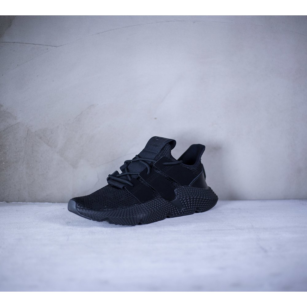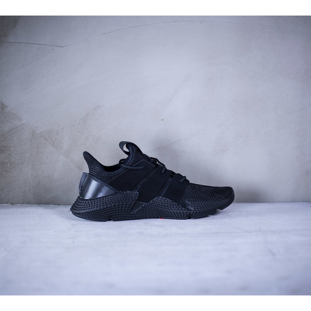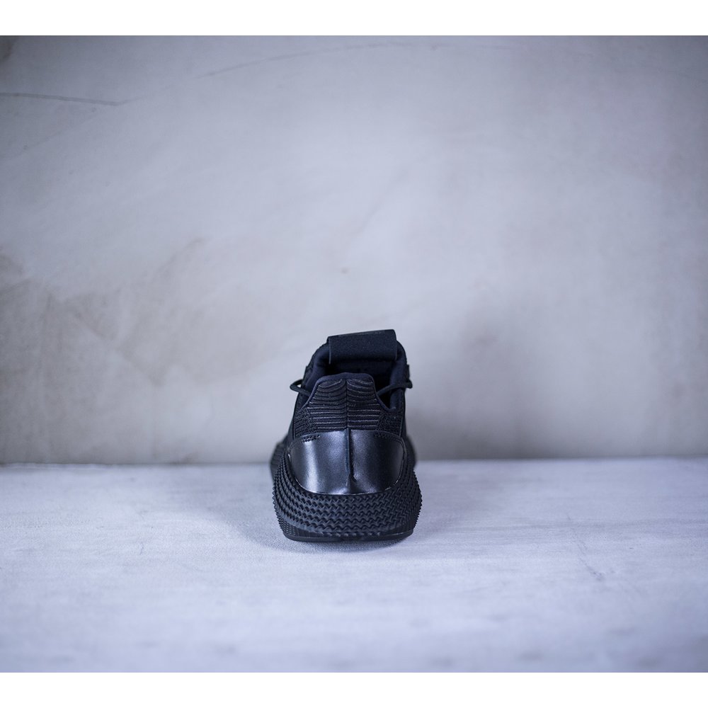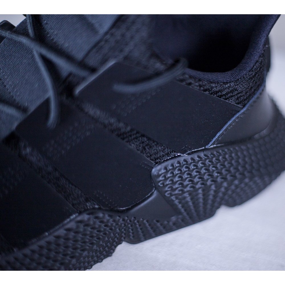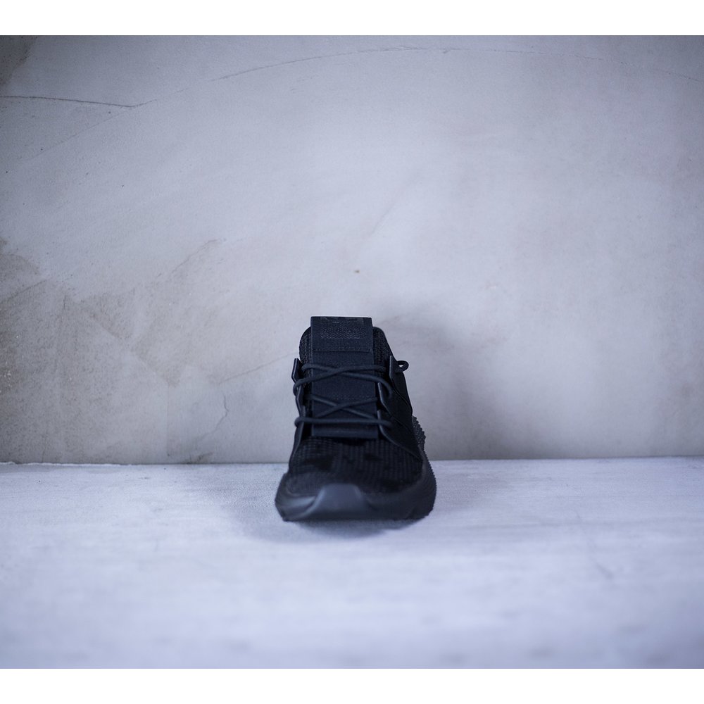 Pánske tenisky adidas model Prophere v čiernom prevedení. Tenisky majú mohutnú čiernu tvarovanú podrážku, ktorá je dominantou celej tenisky. Zvršok je z pevnejšieho úpletu. Po bokoch tenisiek sú čierne úchyty na šnúrky, ktoré sú tiež v čiernej farbe. Päta je potiahnutá hladkou kožou. Na jazyku sa nachádza čierne logo značky. Vnútro je z látky a z neoprénu.