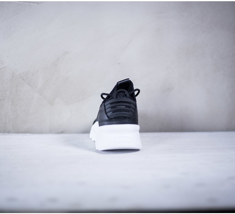 Pánske čierne tenisky Puma RS-0 Sound sú teniskami zo série Running System. RS modely sú inšpirované teniskami pôvodne určenými na šport a samozrejme, ako už ich názov napovedá, na behanie. Zvršok je vytvorený kombináciou kože, sieťoviny a neoprénu. Tenisky sú samoupínacie ale doplnené sú aj čiernymi šnúrkami, ktoré sa starajú o lepšie upnutie tenisky na nohu. Na päte je okrem zaujímavého plastového detailu aj čierne šnúrkové pútko pre lepšie obúvanie. V oblasti jazyku je čierny kožený detail s vyrytým logom značky a modelom tenisky. Biela medzipodrážka je zaujímavého tvaru a zhotovená z mäkkého materiálu a stará sa o odľahčený a pohodlný pocit počas vyzžiavnia tenisiek. Podrážka je vyrobená z pevnej gumy a je bielej farby.